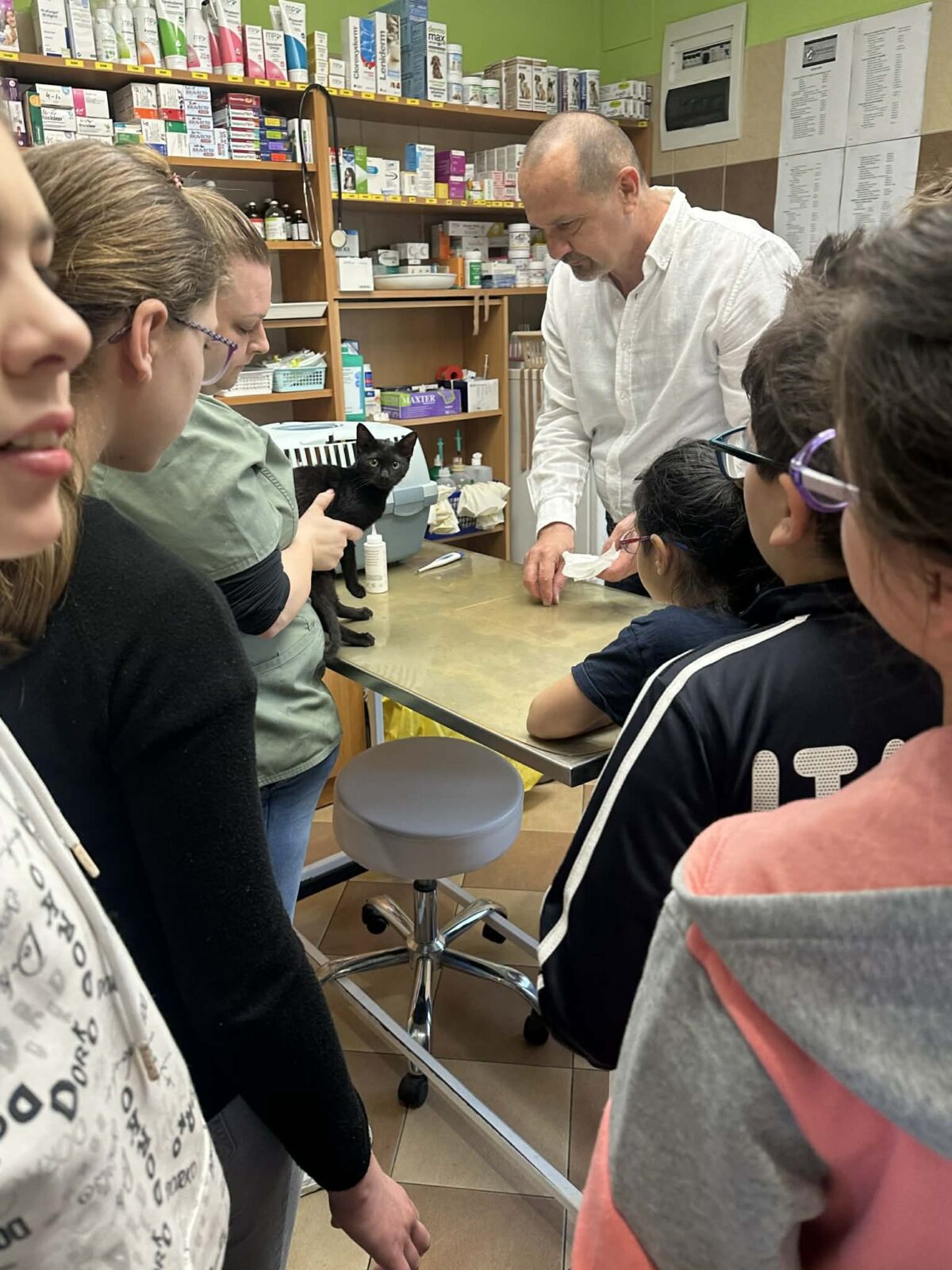 tájékozódtak a kisállatok kezelésével kapcsolatos általános, illetve legfontosabb tudnivalókról. Beszélgettünk arról, hogy mennyire fontos a rendszeres ellenőrzés és a megelőző oltások, kezelések megléte, a felelős állattartás. Nagy örömünkre Rózi cica általános vizsgálatát is megtekinthettük. Az érdekes röntgenfelvételek megtekintése mellett a különböző betegségekre alkalmazott gyógyszerek tanulmányozására is sor került.